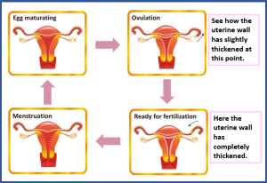 When fertilization does not occur, the next stage in the ovulation cycle involves a decrease in the secretion of the hormone’s estrogen and progesterone. As a result, the lining of the uterus begins to shed and separates from the uterus. This tissue, along with blood, is then expelled from the body through the vaginal canal. This process is referred to as menstruation. Since this process operates in a cycle, it is known as the menstrual cycle and may continue until she reaches about 50 years of age.
