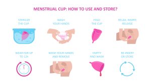 This is a bell-shaped cup, usually made of silicone, is inserted into the vagina to collect menstrual blood. The menstrual cup can be washed and reused.